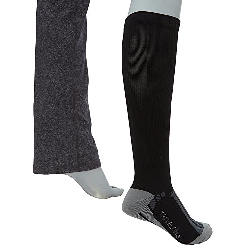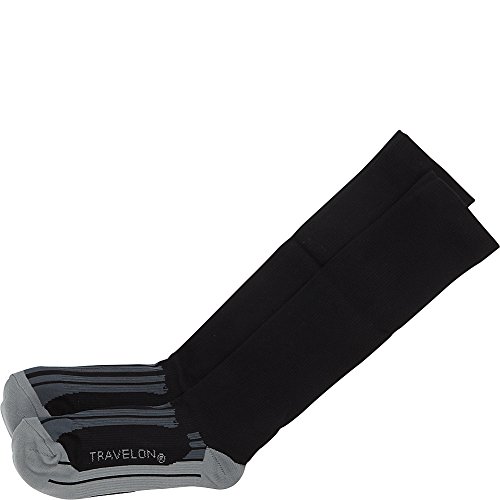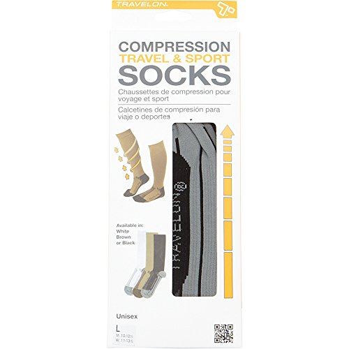 -. Brand : Travelon -. Department : mens -. Feature : Includes two pairs of large size socks / Gradual compression / Perfect for long flights, sports and extended periods of sitting / Stimulates blood circulation / Helps reduce swelling on flights -. Label : Travelon -. Manufacturer : Travelon -. PackageQuantity : 1 -. ProductGroup : Apparel -. ProductTypeName : LAGE -. Publisher : Travelon -. Size : One Size -. Studio : Travelon -. Title : Travelon Compression Travel Sock Two Pack