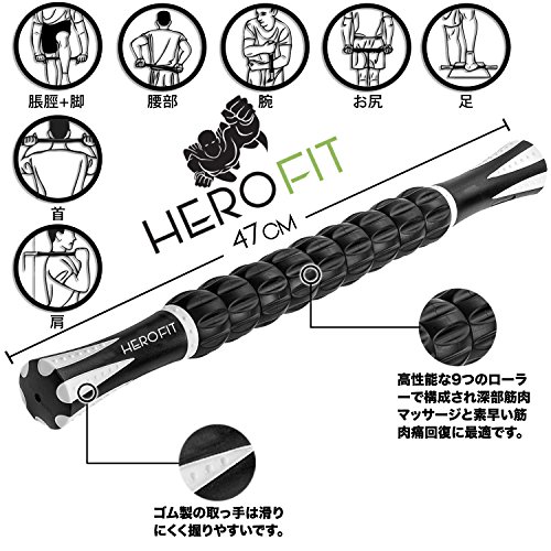 Hero Fit HERO FIT - 맛사지 롤러 스틱 | 트리거 포인트&근근막릴리즈 롤링 머슬 안마기 필수 엑서사이즈 가이드 부착