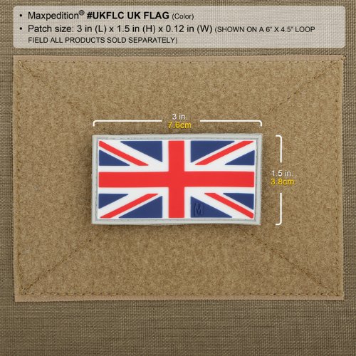 -. Binding : Sports -. Brand : Maxpedition -. Feature : 3-Inch (L) x 1.5-Inch (H) x 0.12-Inch (W) / Made from PVC rubber / Includes additional loop field lined sheet for sewing onto clothes or protecting hook back when not in use -. Label : Maxpedition Gear -. Manufacturer : Maxpedition Gear -. Model : UKFLA -. ProductGroup : Sports -. ProductTypeName : SPORTING_GOODS -. Publisher : Maxpedition Gear -. Studio : Maxpedition Gear -. Title : Maxpedition Gear UK Flag Patch
