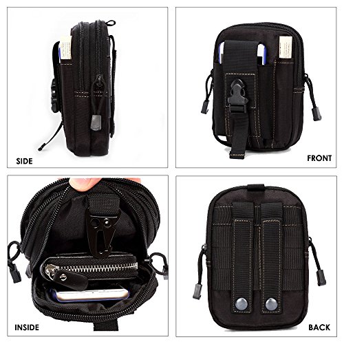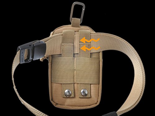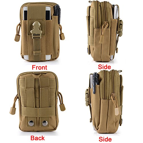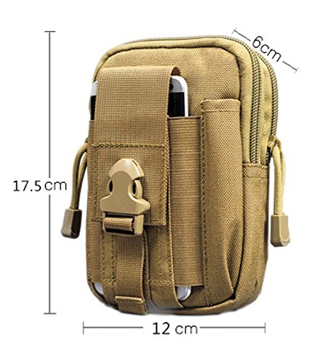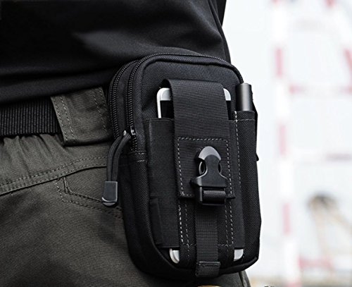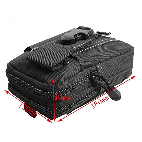 -. Feature : A cool addition travel gear, easy to use, the surface of the Utility Gadget Pouch is not easy to stick dust, stains, easy to take care / Can be attached to a backpack or a belt and therefore fits snugly to your trouser's waist / The tactical waist pack is more-in-one pouch. Small bag is with large capacity. It is very easy to put goods in and take out. Perfect for storing cell phone, key chain, pen, wallets, carabineers and other camping items / The tool pouch is of strong water proofing property to ensure its long-term use in a humid environment, or that the product does not decay after flooding / Great for outdoors, tactical sports, hiking, climbing, EDC use and etc