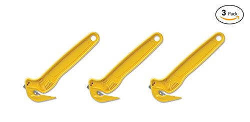 3/Pack Pacific Handy Cutter DFC364NSFY Food Safe Film Cutter, Cryovac Cutter, Stretch Wrap, Shrink Wrap Cutter, Banding Cutter, Carton Cutter, Box Cutter w/ Tape Splitter, Disposable, Yellow