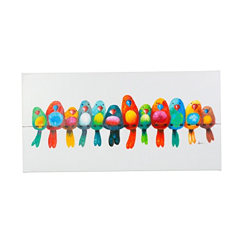| These colorful birds are sure to liven up any room. The bright, contrasting colors against a stark white backdrop are especially striking. Mount this original painting on your home or office wall and instantly notice a change in atmosphere. Add color to any room without overpowering the existing décor with this beautiful artwork. General Features: Wall mounted Hangers included Overall Dimensions:20x20x1.5 Material include acrylic paint, wood stretcher, and metal hanger Hand Painted Unframed, no additonal framing required 1 Year Limited Manufacturer Warranty applies to products purchased from Y-Decor. Warranty covers any defects in material or workmanship under normal use during the warranty period. Y-Decor may repair or replace products or parts of the product that prove defective. Warranty does not cover any problem caused by improper maintenance, damage resulting from natural disasters, theft or loss of the product. The digital images we display have the most accurate color possible. However, due to differences in computer monitors, we cannot be responsible for variations in color between the actual product and your screen. |