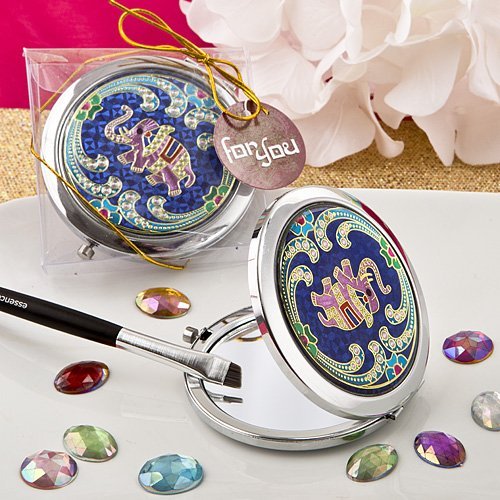 Indian Elephant Blue Metal Compact Mirror in Gift Box