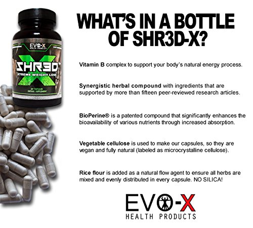 -. Binding : Health and Beauty -. Brand : EVO-X Health Products -. EAN : 0616450832858 -. Feature : ENERGY, METABOLIZER - The ingredients in SHR3D-X are designed to turn your body into a fat burning machine through potent metabolism boosting compounds and herbs. / SYNERGISTIC INGREDIENTS - The herbs in SHR3D-X have been researched and supported by the latest clinical trials and peer-reviewed articles. / MADE IN THE USA - Our products are designed in the Midwest and manufactured in a state of the art facility located in New York. / 100% SATISFACTION GUARANTEED! - Don't like it? Send it back. / Our products are made to the highest standards of FDA mandated Current Good Manufacturing Practices ("cGMP"). -. IsAdultProduct : 0 -. Label : Nutritional Products International -. Manufacturer : Nutritional Products International -. MPN : SHR3D-X -. NumberOfItems : 1 -. PackageQuantity : 1 -. PartNumber : SHR3D-X -. ProductGroup : Health and Beauty -. ProductTypeName : HEALTH_PERSONAL_CARE -. PublicationDate : 2016-04-12 -. Publisher : Nutritional Products International -. ReleaseDate : 2016-04-09 -. Studio : Nutritional Products International -. Title : EVO-X Health Products SHR3D-X Supplement, 60 Count -. UPC : 616450832858