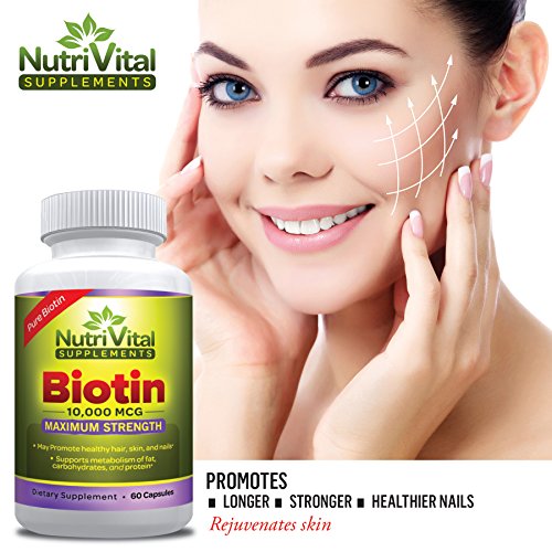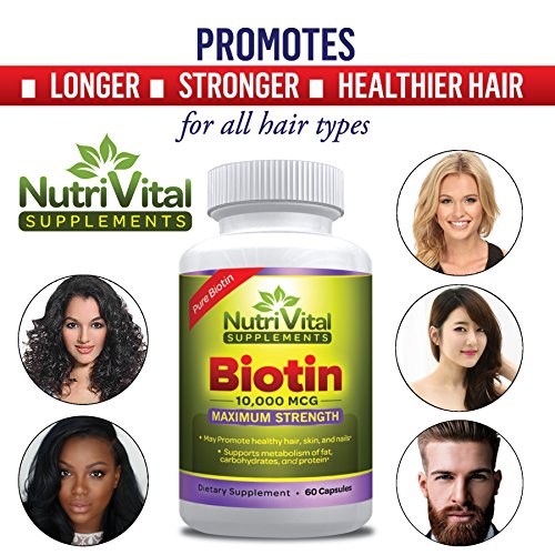 This pure vegetarian capsule biotin vitamin promotes healthy hair, skin, and nails for women and men. It can help hair grow faster, fuller, and stronger. It can reduce dry, brittle, damaged and thinning hair.