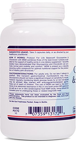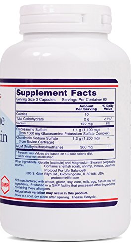 Protocol For Life Balance - Glucosamine & Chondroitin with MSM - Supports Healthy Joint Function - 180 Capsules