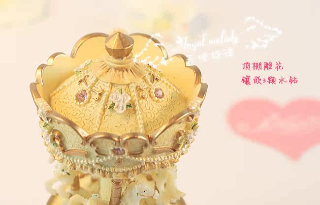 旋转木马做了裂纹效果的图案,配上星星点点的小花,亮晶晶的彩钻和迷人的金边,浪漫典雅。