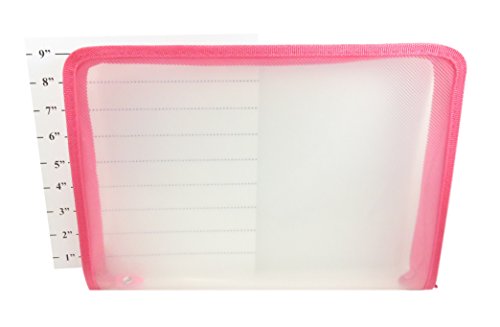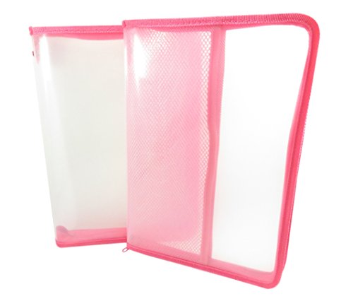 Zipper Transparent File Case Folder Bag School Travel Arts-n-Crafts 13" x 9" Clear Neon Pink (Set of 2)