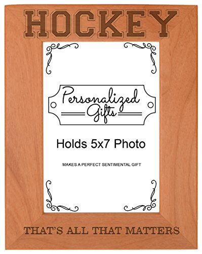 -. Binding : Kitchen -. Brand : Personalized Gifts -. Feature : A perfect birthday gift or gag gift for a hockey player. / Made from real wood, this natural frame will have its own unique coloration and wood grain pattern. Therefore, product may vary slightly in appearance from image shown. / Frame includes a glass front and can be displayed hanging or standing with built in hook and easel. / This beautifully crafted picture frame is designed and engraved in the USA. / Engraving and frame color may vary slightly, as each piece of wood is unique. -. Model : A-P-L-AWF-0292 -. ProductGroup : Home -. ProductTypeName : HOME -. Title : Hockey Gifts That's All That Matters Natural Wood Engraved Photo Picture Frame
