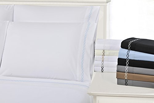 CLASSIC STYLE. The variety of vibrant colors are available in various sizes, featuring a lustrous sheen from the sateen finish and charming quatrefoil embroidered details. Complete your bedroom décor with the coordinating Duvet Cover, extra Pillowcases, and Bed skirt for a plush, put together look.