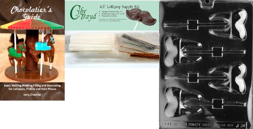 Cybrtrayd "Tooth Lolly" Chocolate Mold with Chocolatier's Bundle, Includes 50 Sticks, 50 Cello Bags, 25 Gold and 25 Silver Twist Ties and Chocolatier's Guide