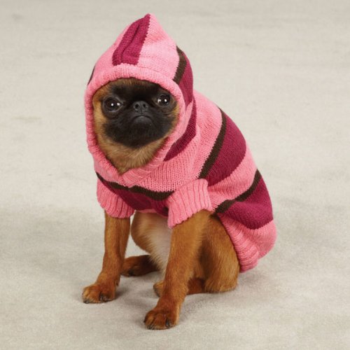 -. Feature : Striped knit dog hoodie features a 2-toned pattern with ribbed knit sleeves and hem / Features a two-toned pattern with ribbed knit sleeves and hem / Made of 100-percent acrylic / Available in small medium size and pink color / Measures 14-inch length
