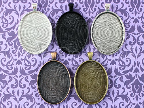 10 Pack - CleverDelights 30x40mm Oval Pendant Trays - Mix Pack - Pendant Blanks Settings Photo Jewelry
