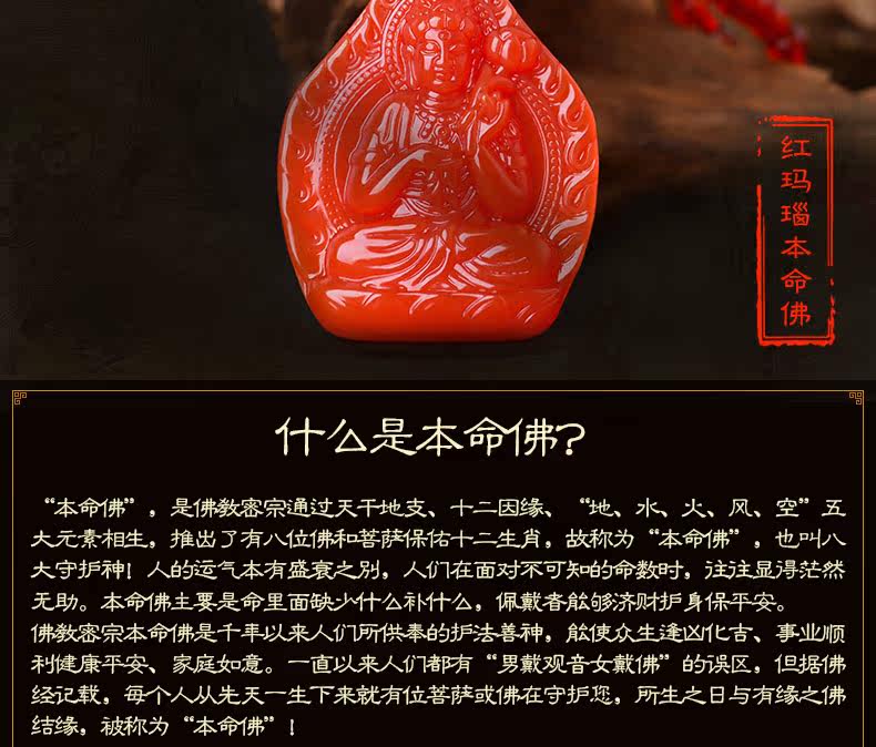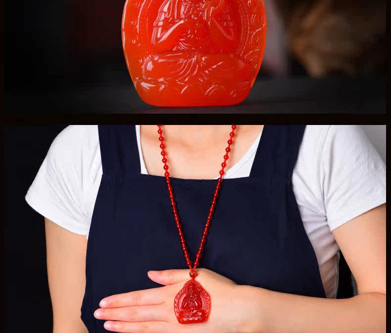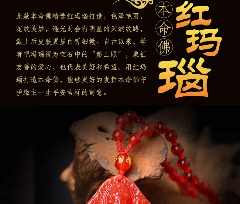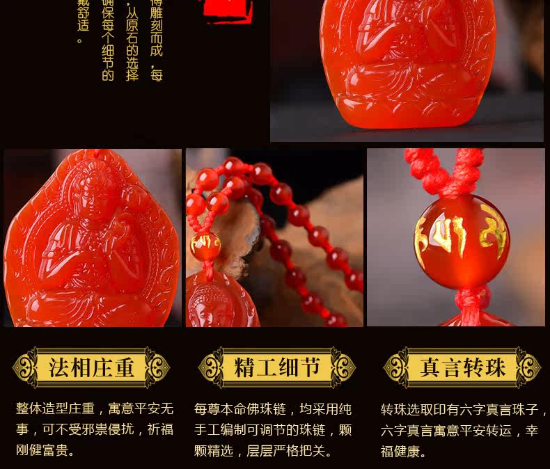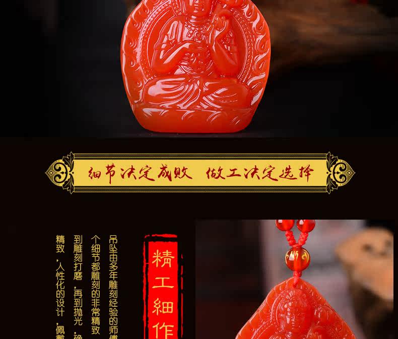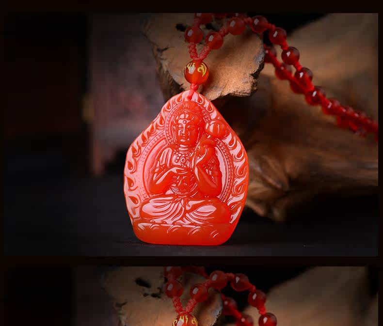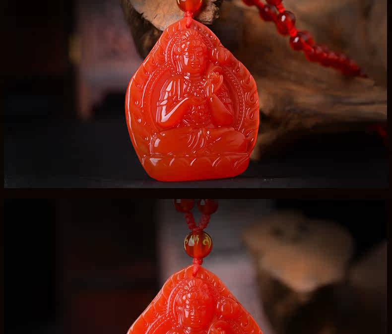 开光天然红玛瑙大势至菩萨吊坠 生肖属马本命佛男女水晶项链礼物
