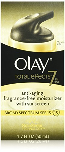 Total Effects 7-in-1 Anti-Aging Fragrance-Free Moisturizer with SPF 15 is a daily moisturizer that revives skin and protects against harmful UVA/UVB rays. Formulated with Its VitaNiacin Complex and skin conditioners, it fights 7 signs of aging for younger, healthier-looking skin. Its vitamin-rich formula helps reduce the look of age spots, minimize the appearance of pores, and reduce the appearance of fine lines and wrinkles.
