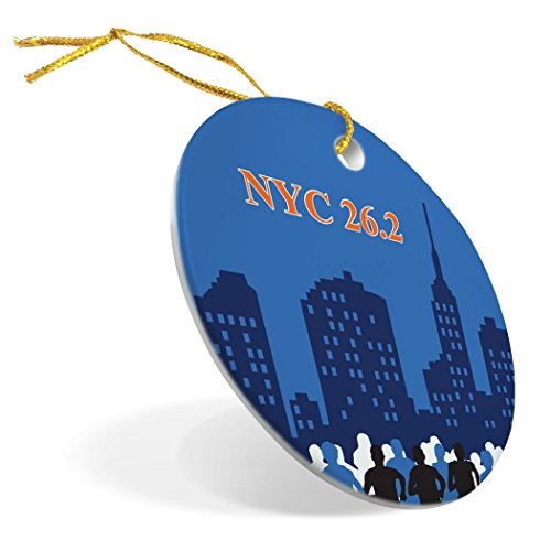 HIGH QUALITY! Our NYC 26.2 Marathon porcelain ornaments are made from a high quality white porcelain so that they can stay looking pristine for many holidays to come! Each ornament measures 3" and features the colorful design on one side and the white porcelain on the reverse.