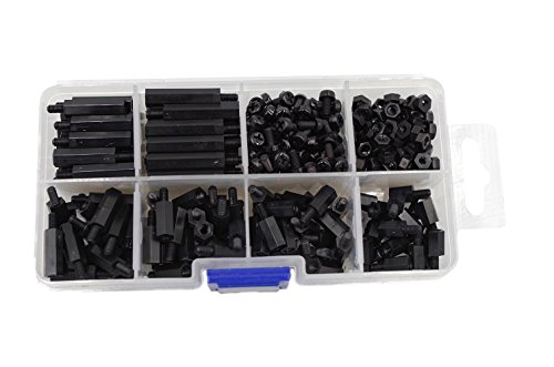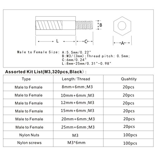 HVAZI 320pcs M3 Male Female Nylon Hex Spacer Standoffs Screws Nuts Assorted Kit(Black)