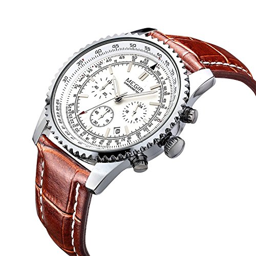 -. Title : MEGIR 2009G Mens Military Wrist Watches 24 Hour Chronograph 3ATM Waterproof Quartz (Brown White)