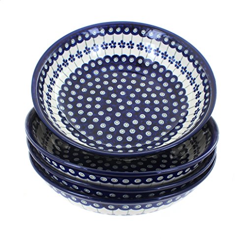 Polish Pottery Flowering Peacock 4 PC Large Salad Bowl Set
