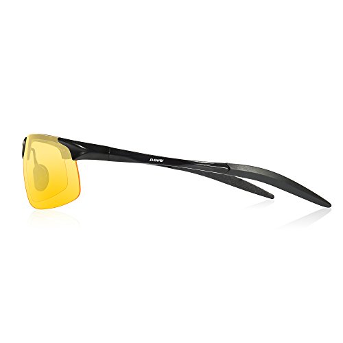-. Feature : 1. COOL UV 400 TAC POLARIZED LENS. DAWAY SG06 Men's sports polarized sunglasses are made of 9-layer HD polarized lenses. High-difinition visual, uv protection, full glare barrier. It can protect your eyes and prevent glare from reflecting on flat surfaces (water, snow, road pavement). This polarized sunglasses also has a strong impact resistance, the lens are very durable and can be cleaned easily. / 2. HIGH-GRADE ALUNINUM-MAGNESIUM ALLOY FASHION LIGHTWEIGHT FRAMES. The material of DAWAY SG06 sports polarized sunglasses frames is aluninum-magnesium alloy, so the frames has strong flexibility, no fade, no rust, no oxidation and won't make people allergic. Character design specifically for men. / 3. COMFORTABLE AND DURABLE. DAWAY SG06 Men's sports polarized sunglasses with a silicone nose pads, it can reduce the burden on the bridge of the nose effectively, apply to different nose, very comfortable. The temples of this sunglasses are fixed by screw, very durable. / 4. MULTIPLE COLOUR, MORE CHOICE FOR YOU. Especially one of our polarized sunglasses is night vision goggles, it's silver frame+night yellow lens, not only can reduce glare, but also can brighten low light, make your vision clearer at night. / 5. WATER PROOF, SWEAT-PROOF, OIL-PROOF, BRODE SCOPE OF APPLICATION. DAWAY SG06 sports polarized sunglasses will be the good choice for outdoor activities. It can be used for golf, fishing, running, driving ,cycling, mountaineering,skiing, skating and so on. A good gift for men
