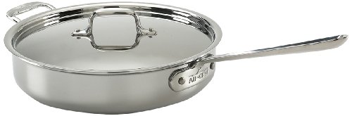 All-clad stainless steel 3-quart saute pan with lid features a large surface area and tall, straight sides that hold in juices, prevent splattering, and allow for easy turning with a spatula. Ideal for a wide range of foods including chicken breasts and fish fillets, the saute pan offers the convenience of browning or searing, then deglazing or finishing in liquid; all in one pan.