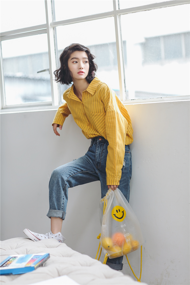 程よくゆったりとしたデザインなので動きやすく、細めのストライプはすっきりとトレンドライクな印象に仕上げてくれます。