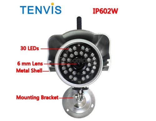 -. Binding : Electronics -. Brand : IP Surveillance -. Feature : The TENVIS wireless network camera features WI-Fi, CMOS sensor, high image and video quality, pan/tilt control and night vision. / It supports remote viewing and recording and is convenient to use anytime and anywhere. -. Label : IP Surveillance -. Manufacturer : IP Surveillance -. ProductGroup : PC Accessory -. ProductTypeName : COMPUTER_COMPONENT -. Publisher : IP Surveillance -. Studio : IP Surveillance -. Title : TENVIS 1/4 Inch CMOS Sensor Outdoor Waterproof Wireless Network Camera (Silver)