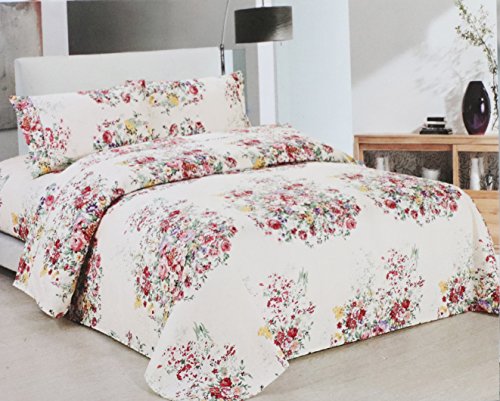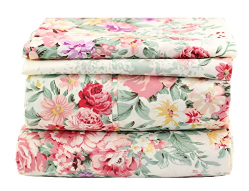 1800 Series (K) Super Soft Egyptian Comfort 4pcs KING Sheet Set Microfiber Cottage Floral on Ivory