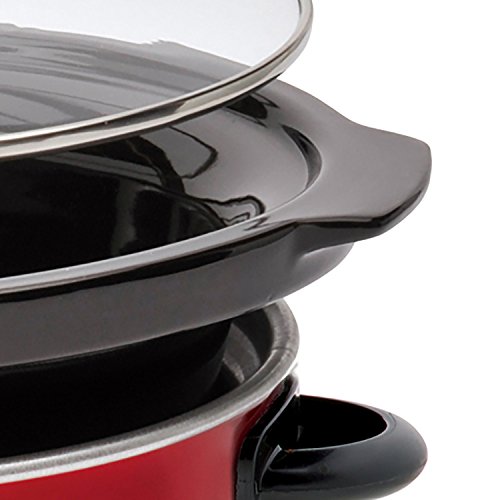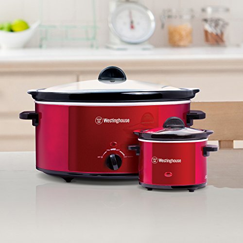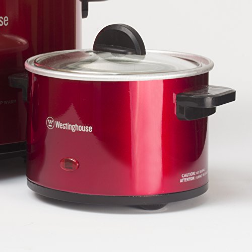 Perfect for soups, meats and vegetables, the Westinghouse WSC801RD Metallic Red Slow Cooker is a necessity for any kitchen. Featuring a large 8.0 quart capacity and oval-shaped design, this slow cooker is ideal for almost any recipe. It is also equipped with High, Low and Keep Warm settings to make sure your food always turns out its best. Comes with a 0.6 quart metallic red sauce warmer that is perfect for dipping. Stylish metallic red exterior with removable crock makes it excellent for parties, sporting events and buffets.Feature