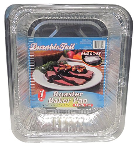 This Durable Foil aluminum roasting pans are recyclable, convenient and disposable with support bars that provide sturdiness. Disposable bake ware makes clean up easy, no mess Great for baking, serving and transporting foods. 96 count. Made in the USA. Durable Packaging International manufacturers food service packaging products. everything you might require for your commercial baking needs from aluminum foil baking pans and trays to foil rolls and popup sheets.Feature