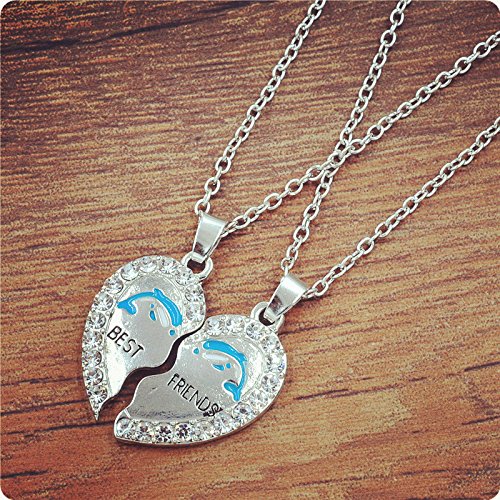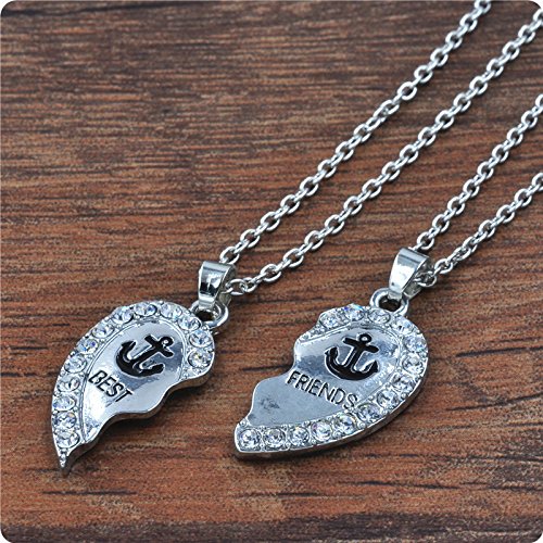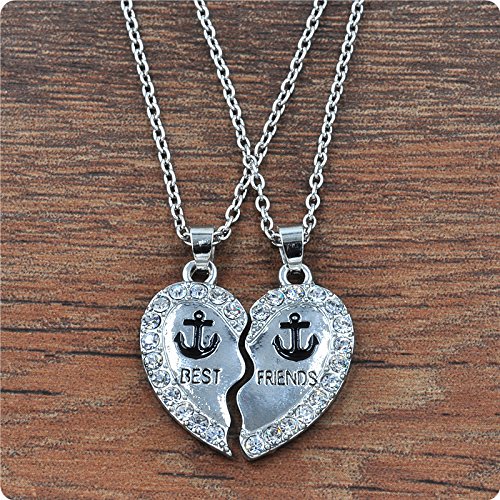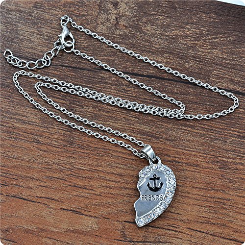 -. Feature : To avoid tarnish, limit exposure to water, perfume, or body cream / Two pendants combine into one heart: symbolize the heart to heart friendship between you and your best friend / 2 Necklaces: one for you, one for your BFF / Material: Alloy,Great accessory and decoration in daily life or formal occasion / Handmade with love and environmental friendly material