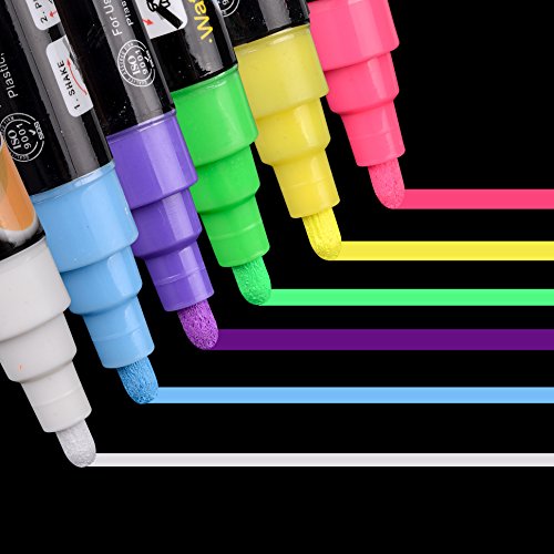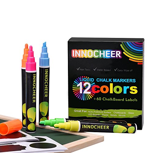 - Pack of 12 Liquid Chalk Markers are excellent for use on glass, plastic, metal, whiteboards, chalkboard stickers, chalkboard contact paper, and so much more! Wet erase for easy clean up.