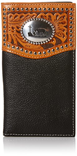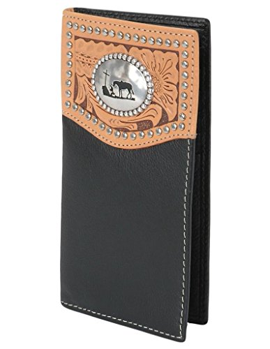 Studio : Nocona Publisher : Nocona Binding : Apparel Product Description Mens Nocona Wallet: Mens Nocona Western Wallet. Rodeo on! This Nocona rodeo wallet features a full grain leather; exquisite tooled leather overlay; silver stud edging detail; and a silver cowboy prayer at the cross concho. N5431401 0
