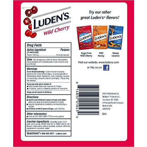 Studio : Ludens Publisher : Ludens Binding : Misc. Product Description For over 130 glorious years people have turned to Luden's throat drops to soothe everyday sore and irritated throats. Luden's delicious tasting drops have been there from the first time they can remember having an irritated, sore throat. Today people young and old still count on the great taste of Luden's drops to soothe their everyday throat irritations. Luden's also comes in a variety of other great-tasting flavors like Wild Honey, Orange, Wild Berry and Honey Licorice. Luden's is available in both boxes and bags. Luden's is a product of the US. 0
