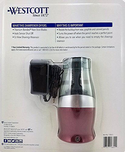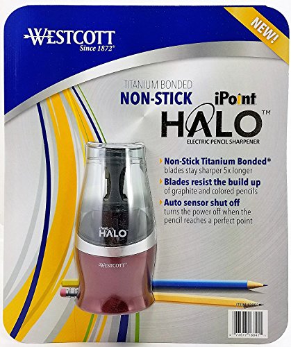 Westcott iPoint Halo Colored Pencil Non-Stick Electric Sharpener, Red