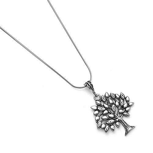 -. Title : 925 Oxidized Sterling Silver Tree of Life Leaves Evil Eyes Protection Amulet Pendant Necklace 18”