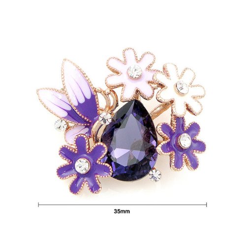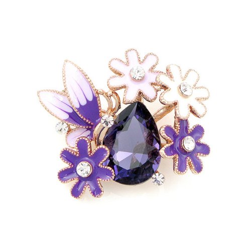 -. Title : Glamorousky Dazzling Butterfly and Flower Brooch with Silver Swarovski Element Crystal and Purple CZ (4677)