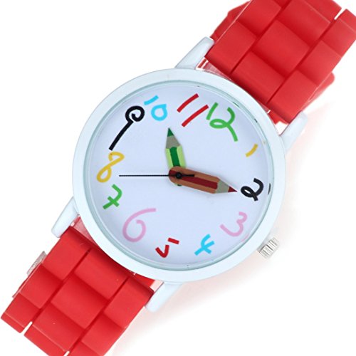 Large dial, clear shilly numbers, pencil pointer, candy-colored strap