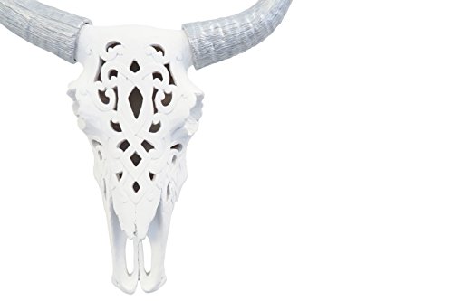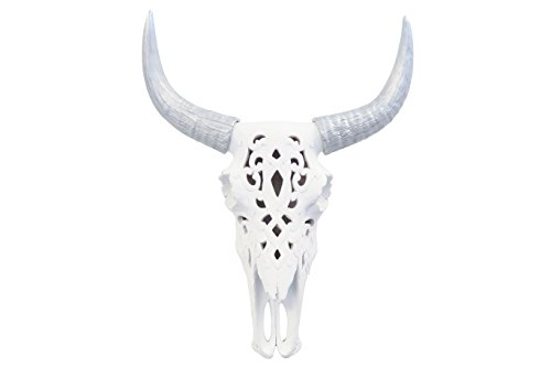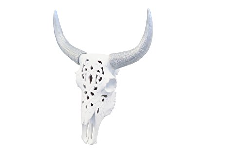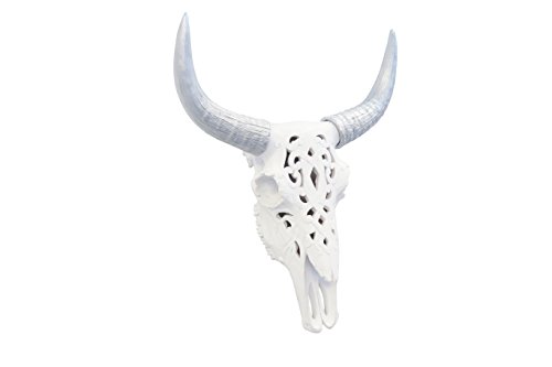 Near and Deer Faux Decorative Carved Cow (Bison) Skull Wall Mount, White/Silver