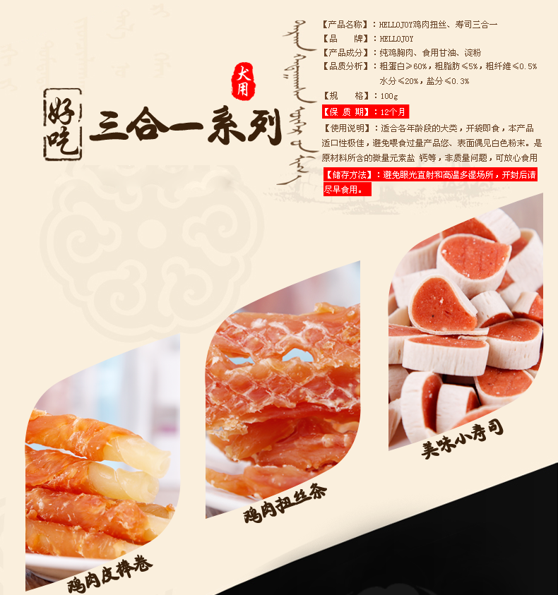 Ingredients: pure chicken breast meat, edible glycerol, starch