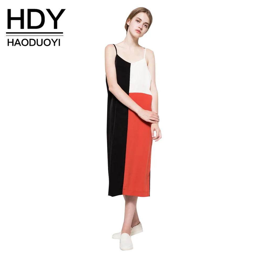 HDY Haoduoyi Summer Casual Women Dress Red Color block Spaghetti Strap Dress Sexy Fashion Beach Shift Dress | |||||||||||||||||||||||||||||||||||||||