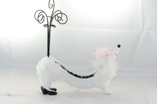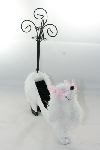 -. Title : Cute White Poodle Rings Holder Jewelry Stand w/ Curly Fluffy Hair