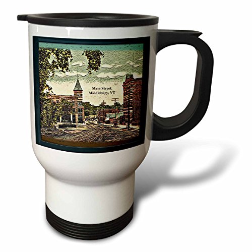 3dRose tm_130843_1 Main Street, Middlebury, VT Vintage 1908 Textured Travel Mug, 14 oz, White