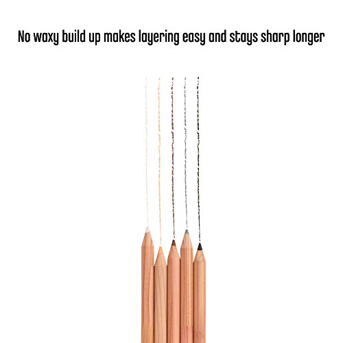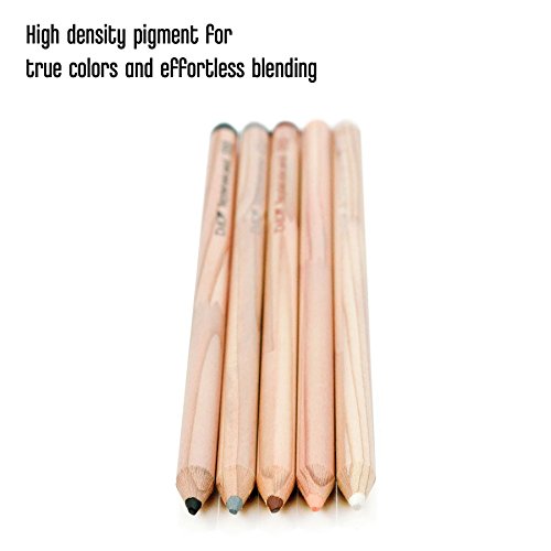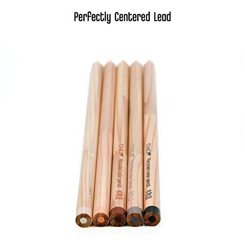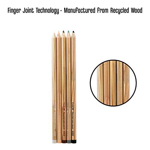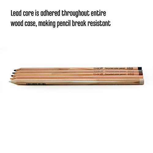 -. Feature : Recycled color pencils made with repurposed finger jointed American Cedar wood / Each pencil has perfectly center lead, is glued from top to bottom, and has multiple coats of lacquer for an amazing finish. / Set of 5 pencils, 1 each of: Black, Gray, Brown, Light Orange, White / High quality wax based lead is artist grade for lasting brilliant color / Wax based lead produces rich, creamy texture and smooth even blending / Dense lead prevents breaking while sharpening