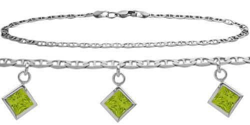 -. Title : 14K White Gold Mariner Anklet with Genuine 2.00 Carat Peridot Square Charms