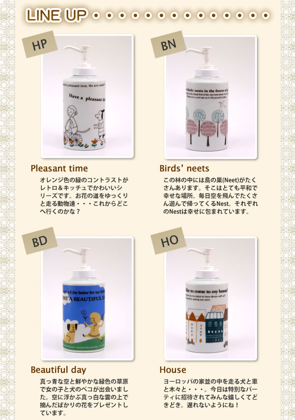 ハンドソープやローションなどの詰め替えを入れて使えるローションボトルぜーんぶこのボトルに詰め替えてしまいたくなる、かわいいボトルです容量はタップリ入る220cc サイズ縦6.7×横5.4×高さ15.3cm重量180g素材・材質陶磁器仕様容量:220cc製造国日本