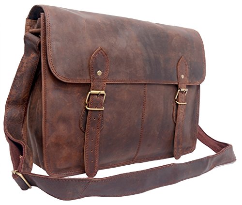 -. Feature : New genuine buffalo leather bag handcrafted with vintage style / 2 inner compartment and 2 zipper pocket / Dimensions: 14x11x4 inches / Strong & durable brass fittings & buckles, quality zippers, heavy duty lining / Adjustable shoulder strap enough for crossbody