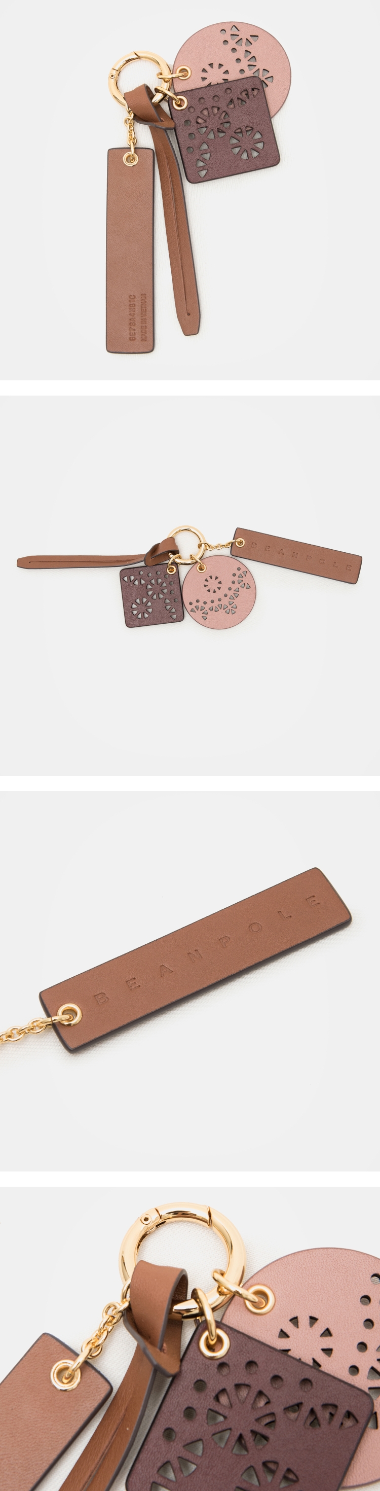 -심플한 원과 네모 실루엣에 여성스러운 펀칭 디테일을 더한 참 장식입니다.