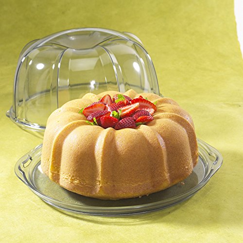 Product DescriptionHigh-impact clear plastic keeps bundt and other cakes fresh Crystal-clear exterior displays cake inside Lid locks to base for transport Measures 11 inches in diameter Hand washing is recommended