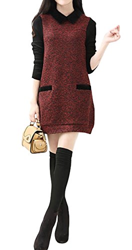 -. Title : (シービリーヴ)SeBeliev 袖 ニット チュニック ワンピ 異素材 切替 襟 付き バイカラー ミニ丈 ワンピース ツイード